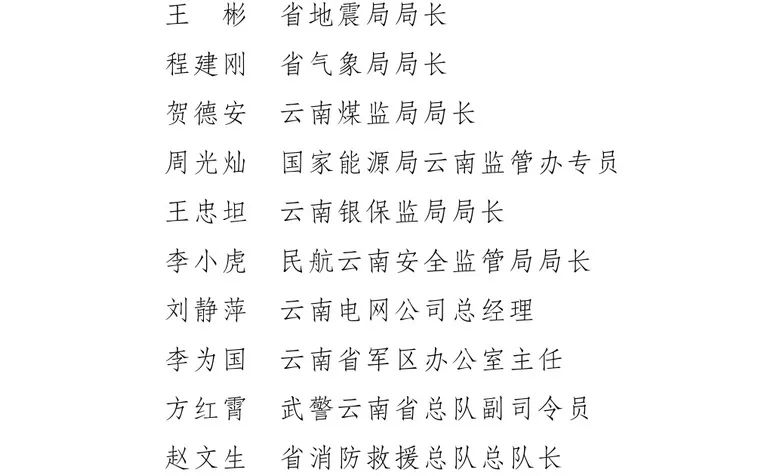 原标题:速看!调整后的云南省安全生产委员会组成人员名单来了!