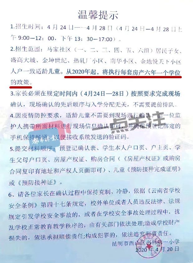 原标题:政策巨变:有学校执行每套房产6年1个学位!昆明主城公办小学划片出炉