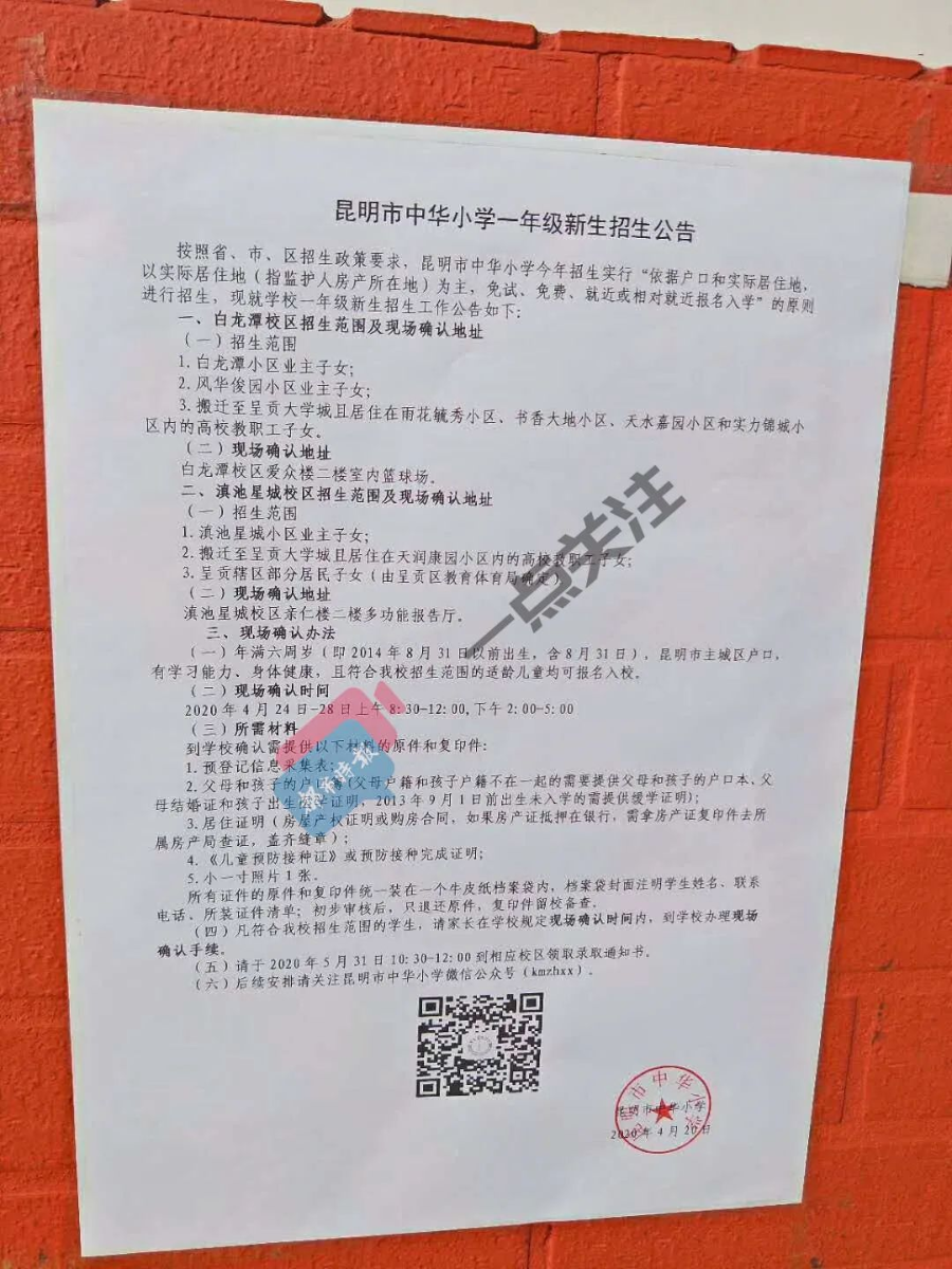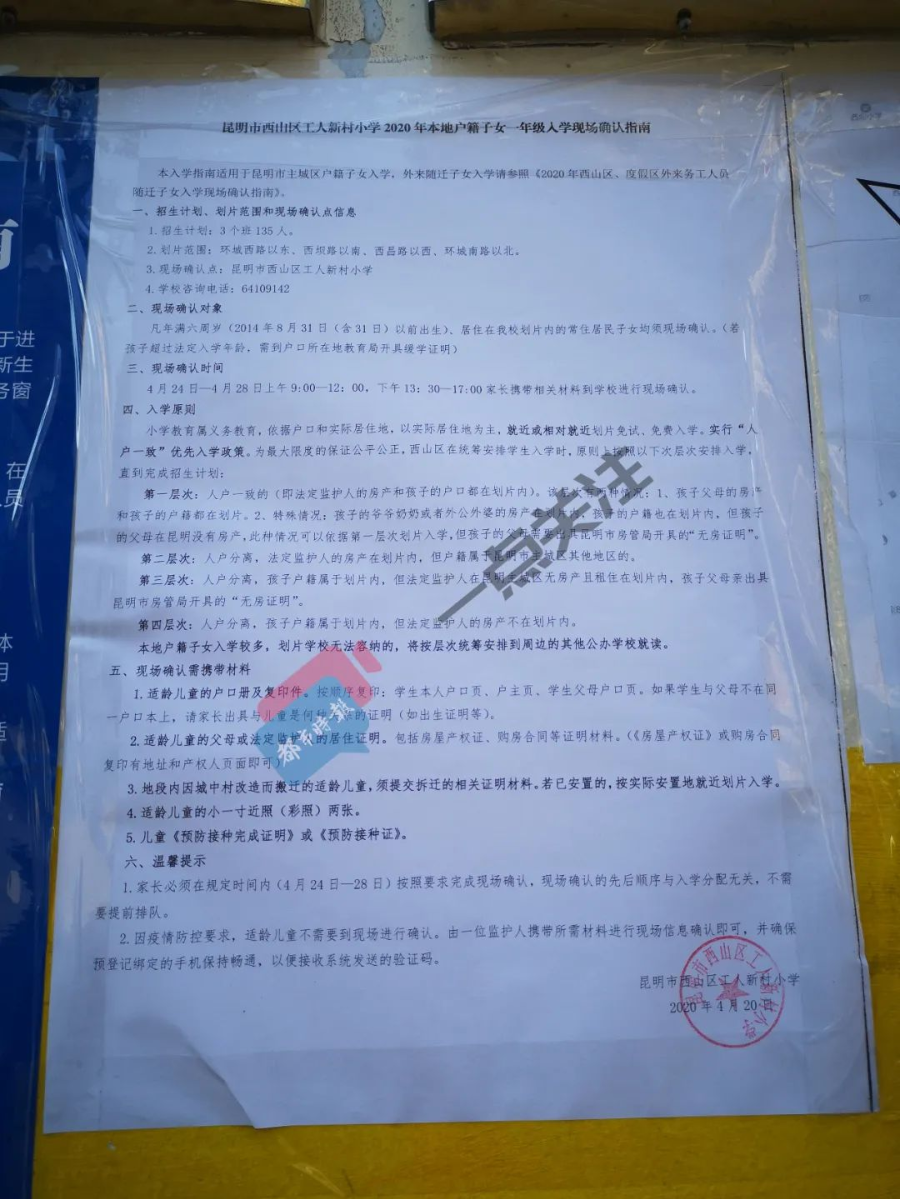 一大早,昆明各所公办小学门口陆续张贴出了2020年招生范围、报名材料等信息。都市时报一点关注记者陆续到各学校收集招生信息,供家长参考。