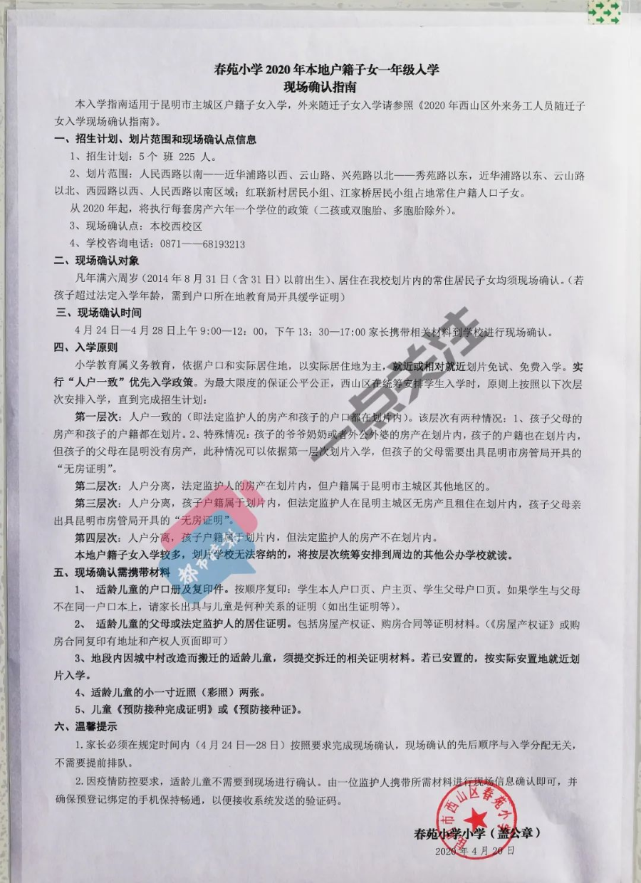 今天(4月20日),昆明市主城区小学公布招生入学信息,家长可查看公办小学招生范围、民办小学招生简章。