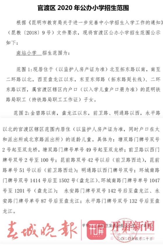 4月20日,昆明市主城区小学公布招生入学信息,家长可查看公办小学招生范围、民办小学招生简章。