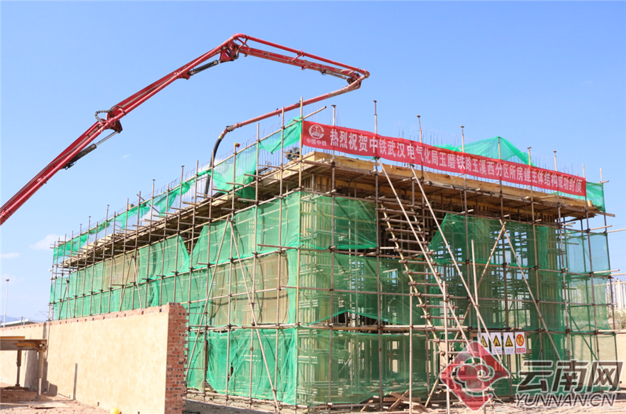 4月21日,随着最后一方混凝土浇筑完成,中老昆万铁路玉(溪)磨(憨)段首座四电房屋——玉溪西分区所主体结构顺利封顶,标志着中老昆万铁路玉磨段站后强电房建工程建设进入全面攻坚阶段。