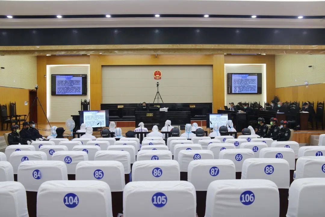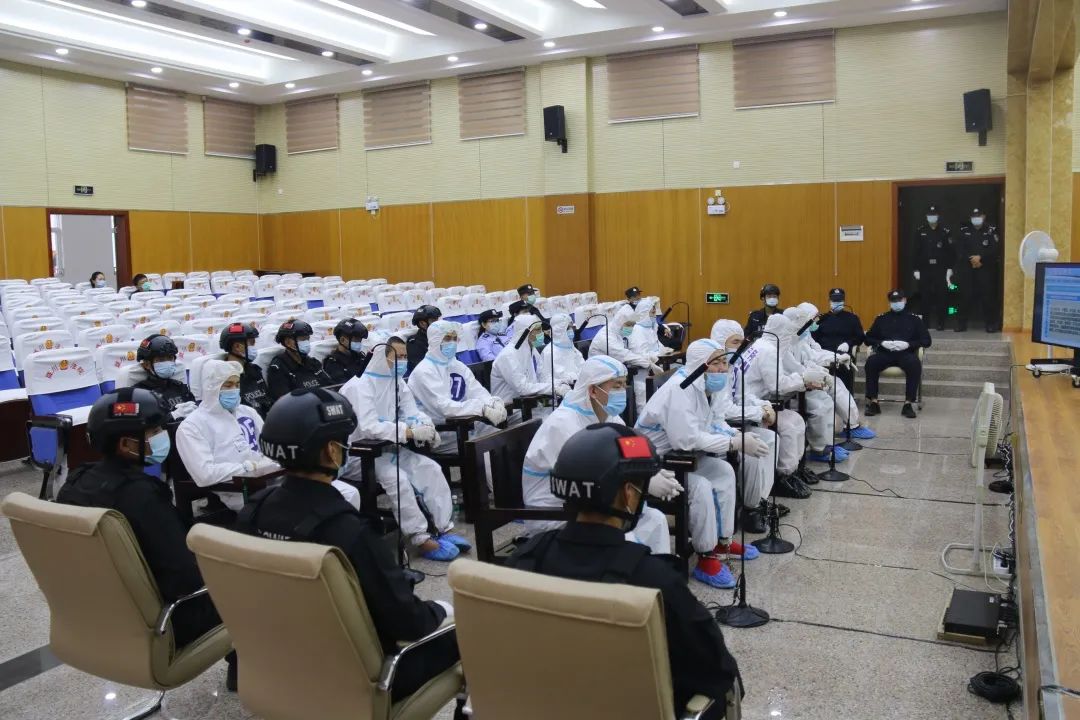 因涉案31名被告人在德宏州看守所、瑞丽市看守所和陇川县看守所分别羁押,为确保新冠肺炎疫情防控期间安全,德宏中院决定采用“1+N”远程视频庭审模式(在德宏中院设主审法庭,在陇川县人民法院设分审法庭)审理此案。在德宏州扫黑除恶领导小组的指导下,德宏中院与各相关部门协同配合制定相关工作方案和疫情防控方案,各司其职,各负其责,确保庭审平稳顺利。