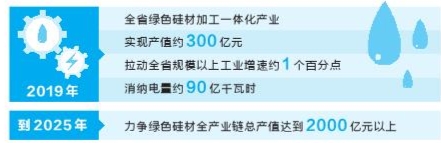 2019年,全省绿色硅材加工一体化产业实现产值约300亿元,连续2年实现倍增,拉动全省规模以上工业增速约1个百分点。消纳电量约90亿千瓦时,有效推动了大产业带动大扶贫战略的实施。