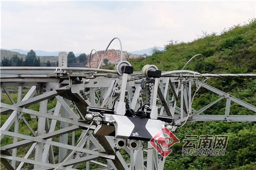 日前,在曲靖市沾益县白水镇香山附近,云南省首款智能巡检机器人正攀附在带电运行的220千伏平富Ⅰ回线的地线上,一边沿着线路的走向慢慢向前行进,一边用自身所携带的可见光摄像机和红外热成像仪等设备对线路健康情况进行“把脉问诊”,仅仅只利用了15分钟就完成了两基铁塔之间线路的巡检工作,这也是云南首款线路巡检机器人在云南省高原气候环境下成功开展首次高压带电巡检试验,成功应用多种智能巡检设备对输电线路形成全方面、多维度巡检和实时动态分析。