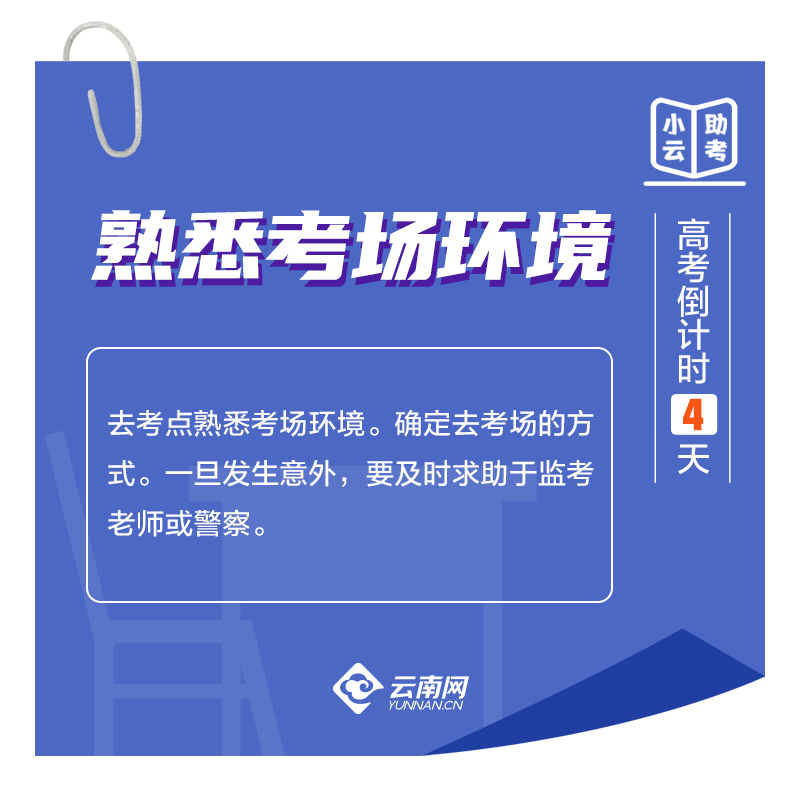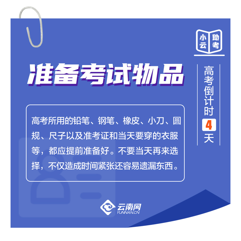 今天是7月3日,距离高考还有最后4天。进入最后冲刺阶段,考生们该如何备考?怎样安排宝贵时间?请查收,云南网小编为考生们整理了以下备忘录,快来分享收藏吧。