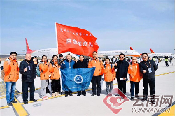 云南省第三批援鄂医疗队中昆明医科大学第二附属医院全体队员出发前合影 供图