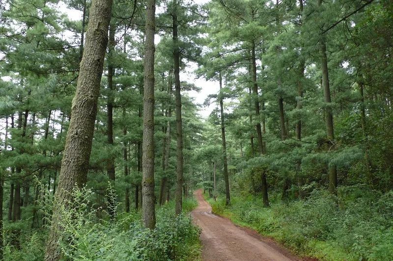 占地约6000亩,区域内以松树为主,由于林荫太密,是一座天然的大氧吧,远远看去松针都是黑色,故名“黑松林”,景色蔚然可观。