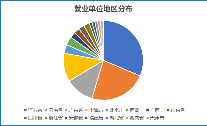 A:近五年,有323名云南籍学生进入南京大学学习,获得各级各类奖学金和荣誉称号超过230人次,各类奖助学金超过690人次。2016届至2019届云南籍毕业生中,超过40%的同学选择在高校继续深造,其他同学的就业领域多集中在信息传输、软件和信息技术服务业,科学研究和技术服务业,制造业,金融业,交通运输、仓储和邮政业以及房地产业等。就业区域,除了返回家乡云南,大多同学选择在江、浙、沪、广东、北京等地就业。