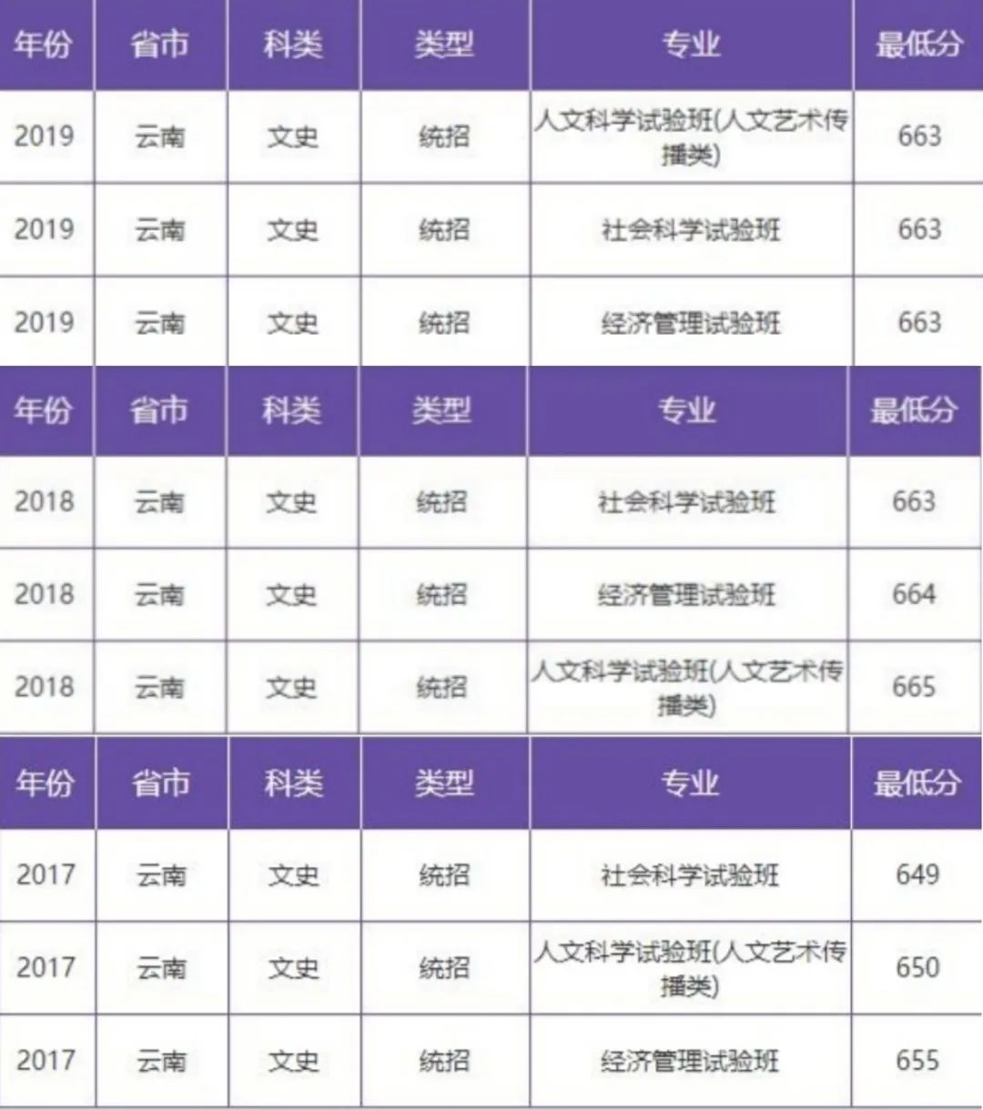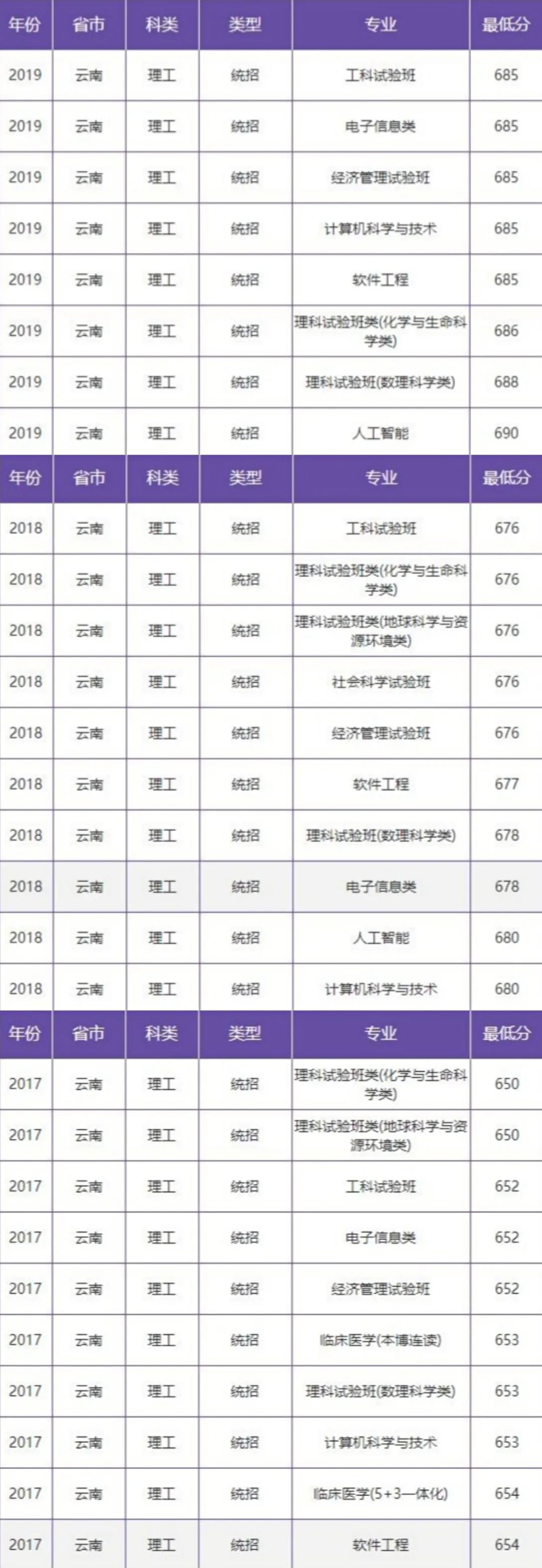 南京大学2015年—2019年云南录取(一本批次)分数线