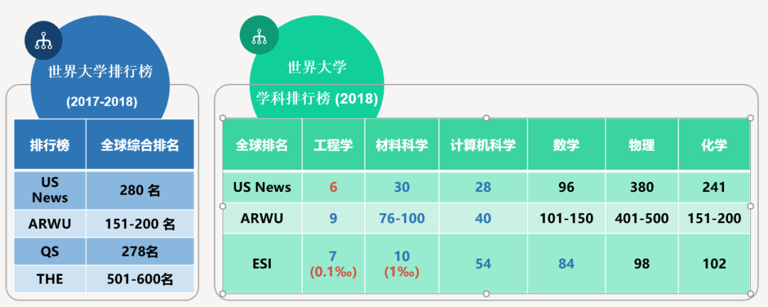 ✦ 下图为哈尔滨工业大学在世界大学排行榜和世界大学学科排行榜中的排名情况。