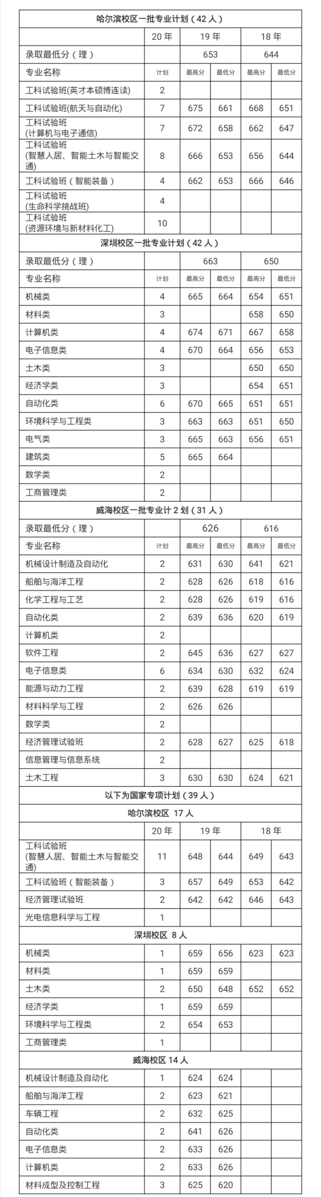 A:哈尔滨工业大学一校三区2020年在滇共计招生158人,人数比去年相比有所增加。大学本部大类招生有6个专业类,所有本科一批录取理科考生均满足第一专业志愿(工科试验班专业除外)。录取考生中,高考成绩排名在云南省前300名的理科考生,录取到工科试验班(英才本硕博连读),可入选到英才学院小卫星班、智能机器人班和未来技术模块,实行本硕(博)贯通培养。高考成绩排名在云南省前700名的理科考生,录取到英才学院工科试验班(英才本硕博连读),可入选到英才学院未来技术模块,实行本硕(博)贯通培养。另外录取没有退档。