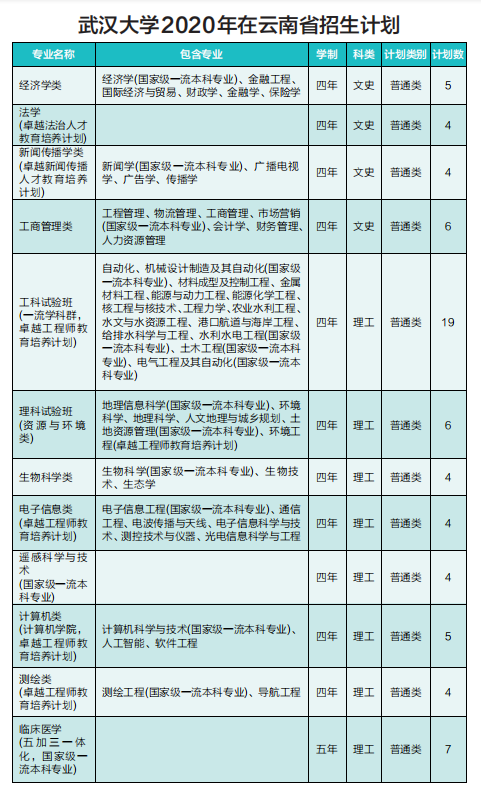 Q: 能否简要介绍下武汉大学今年在云南的招生计划?