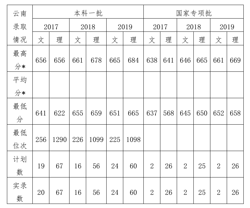 Q: 能否介绍下近三年及2019年武大在云南录取情况?