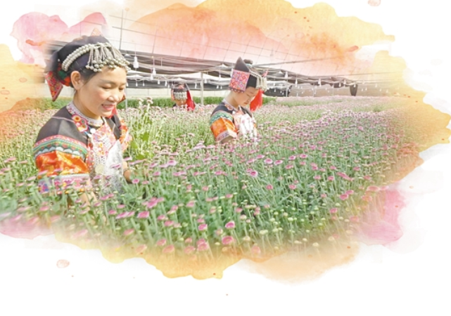 勐曼村的勐曼科技有限公司种植基地里,大片大片的小雏菊正在现代化大棚中绽放。村党总支书记刀忠强告诉记者:“勐曼村花农重新引入了新品种小雏菊,目前,种植面积80多亩,一年可以种植3次,成本在1万元左右,按照每亩40000株,收成4000把,一把平均价格7元以上,产值2.8万元,预计能够实现每亩年收入4万多元。”勐曼村是一个移民村,全村共148户都为傣族群众。