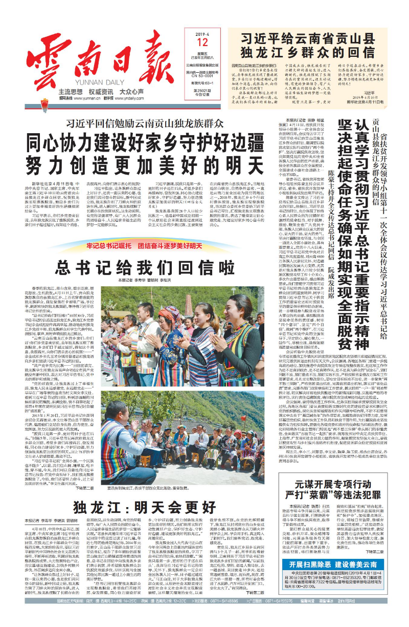 2019年,《云南日报》认真履行党报的职责使命,深入贯彻落实习近平总书记考察云南重要讲话精神,提高政治站位,增强政治意识,忠实记录习近平新时代中国特色社会主义思想在云岭大地的生动实践,展示新时代新气象新作为,重大主题宣传形成强势,主流舆论引导力不断提升,传播力、引导力、影响力、公信力不断增强,为云南决战脱贫攻坚、决胜全面建成小康社会、推动高质量跨越式发展营造良好的舆论氛围。