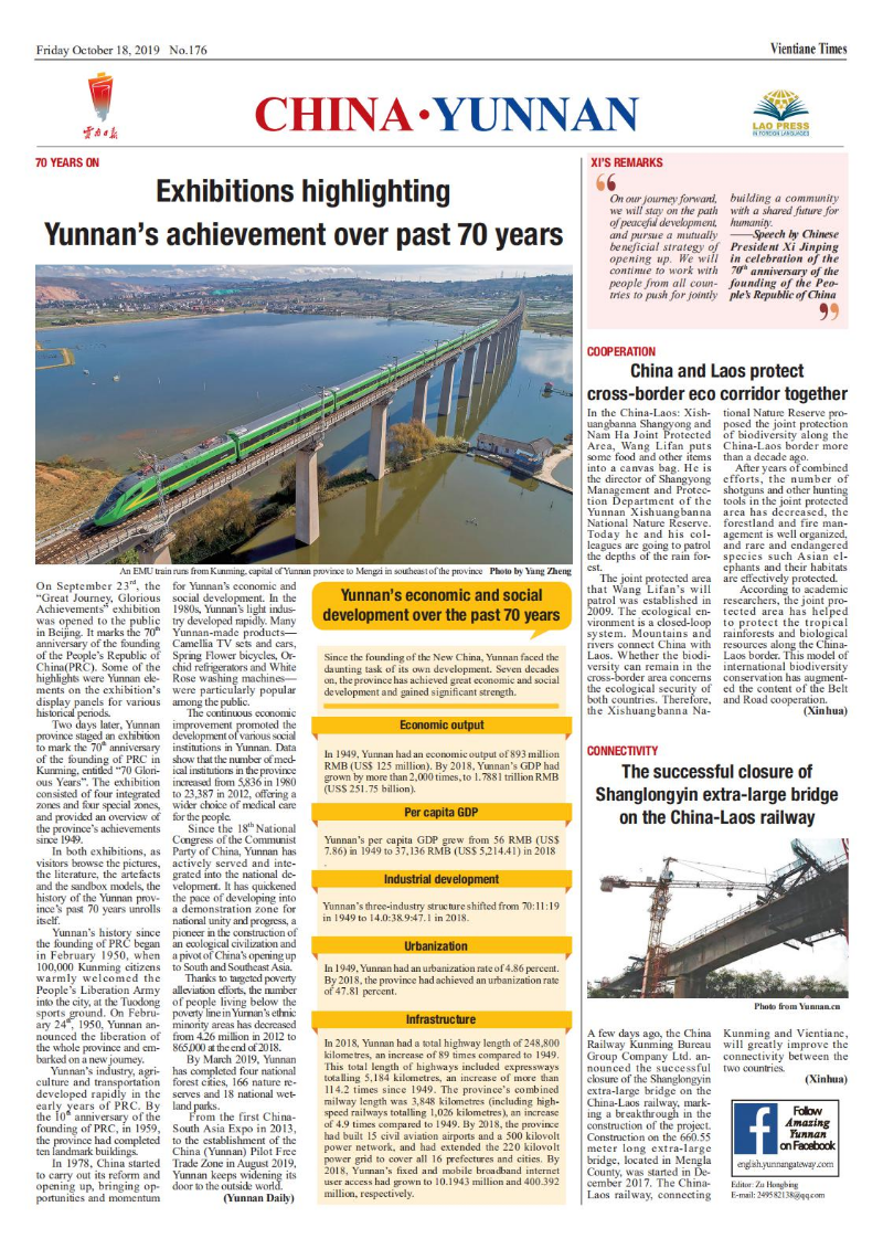 2019年,《云南日报》充分发挥云报集团多语种、多平台的国际传播优势,统筹做好对外宣传报道,积极讲好中国故事、传播中国声音、展现云南形象。