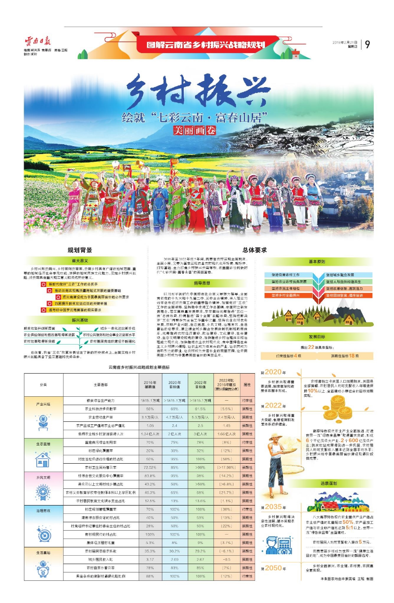 《云南日报》及时报道党和国家领导人,省委、省政府领导的主要活动,党中央、国务院的决策部署和省委、省政府的工作安排,反映全国和全省经济社会建设及各行业、各领域取得的重大成就;及时刊发各类文件和法规公告,全年共刊发《云南省乡村振兴战略规划(2018—2022年)》等各类文件和法规公告27件,版面30多块;及时报道全省各级各部门的主要工作经验,经济社会发展中的热点、难点、重点问题以及相关的举措等,如《昆明市修订机动车停车场管理办法》《云南开办企业“一窗通”在昆启用》等报道。