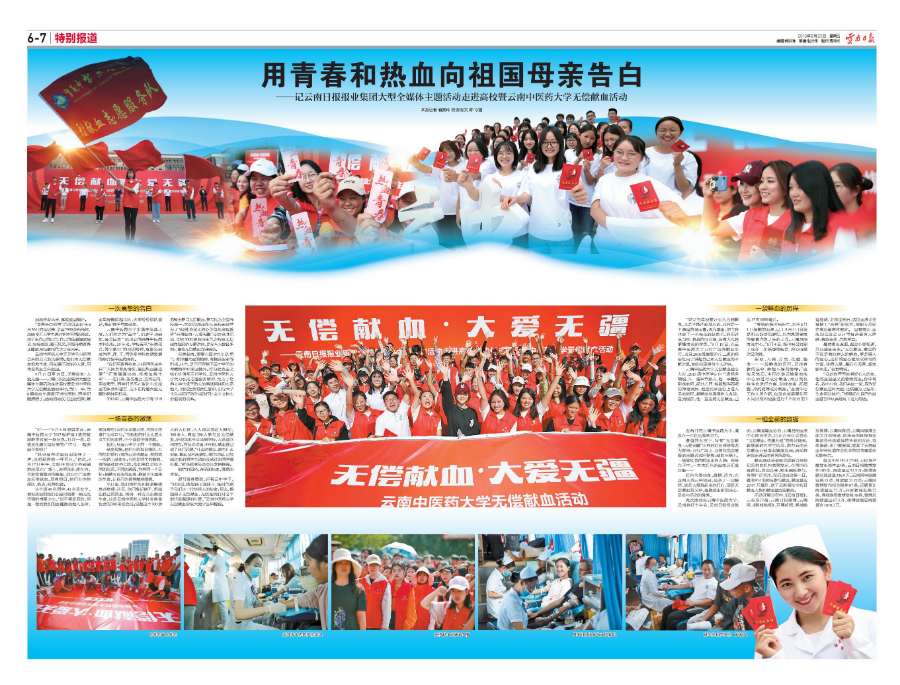 《云南日报》继续与昆明血液中心开展无偿献血公益活动,并启动“无偿献血·大爱无疆——云南日报报业集团全媒体大型主题采访云南高校行”传播项目,开设“无偿献血·大爱无疆”专题,共刊发56篇报道,用一个个献血故事、视频、照片,诠释大爱无疆。