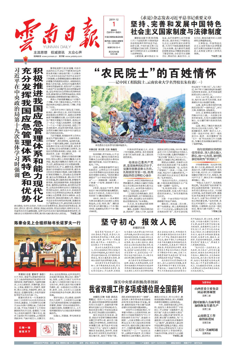 2019年,《云南日报》在科技领域报道中,紧扣科技入滇,科教兴滇,大众创业、万众创新等主题,就云南深化科技体制改革、加快科技创新步伐、加大科技人才培养力度、科技助力脱贫攻坚、加强科普宣传力度等方面的内容进行了深入的挖掘和报道。积极组织策划做好云南生物医药产业集中采访,全面展示近年来云南省在生物医药产业发展中取得的新成绩;及时跟踪中科院昆明动物研究所、植物研究所、省农科院、云南大学、昆明理工大学等研究机构及高校的最新研究成果,以多种形式宣传展示了云南科研工作的新亮点。同时,主动对接联系中央驻滇及省内科研机构,及时报道云南新物种发现、新品种培育成功相关新闻,向公众展示云南生物多样性之美。