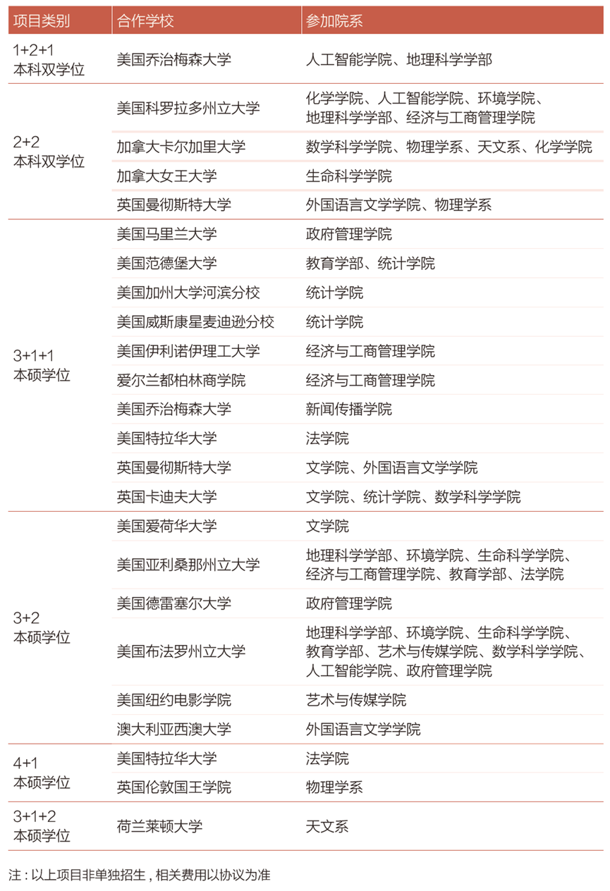 A:我校众多国际交流项目面向在校生申请。与40多个国家和地区的近300所大学和研究机构开展人才培养合作,遍布美、欧、亚、澳4大洲;每年投入国际交流专项经费用于资助学生赴国际组织实习项目、拔尖人才创新项目及团组学习交流项目,并积极申请留学基金委的奖学金、社会捐赠专项支持学生赴境外开展长短期学习。