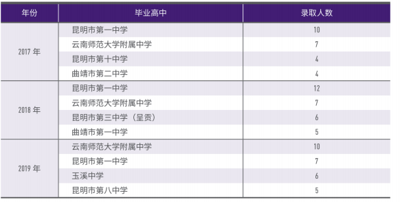 Q:请给出近3年贵校云南学子主要来源高中及其人数。