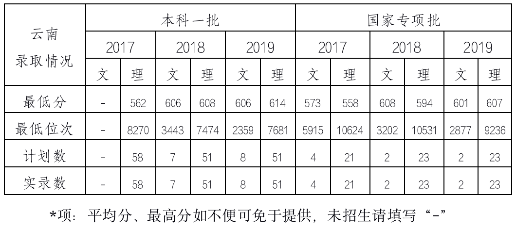 Q:请给出贵校今年在云南分专业录取的数据图表。