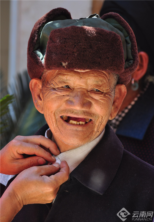 玉龙县宝山石头城村民穿上新衣,露出笑容。赵庆祖 摄