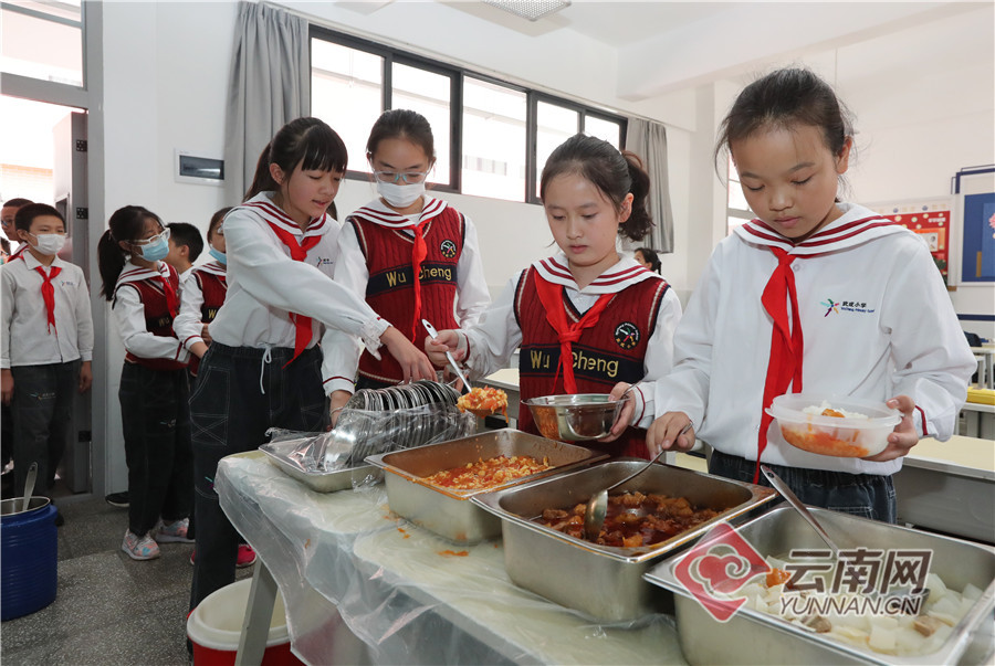 武成教育集团人民路校区六一班同学在午餐时吃多少盛多少,不浪费粮食,用行动践行“光盘”行动。