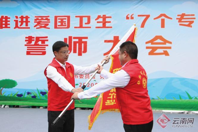 活动现场,弥勒市委书记梁凌云为爱国卫生专项行动战斗队进行了授旗,并宣布行动正式启动。