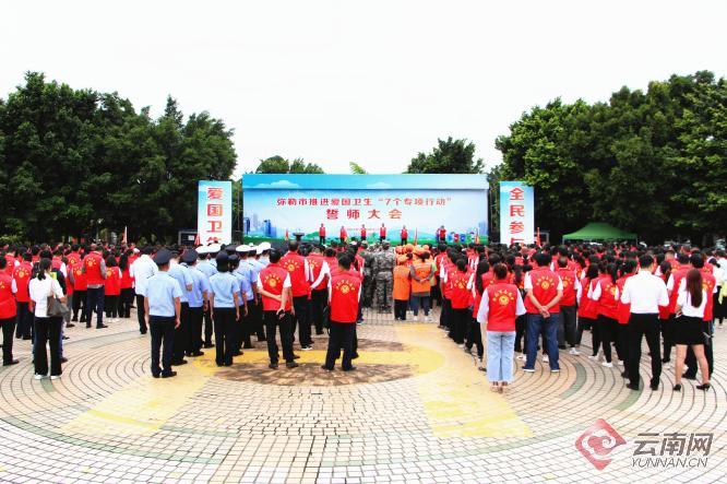 9月7日,云南红河哈尼族彝族自治州弥勒市在湖泉广场举行了推进爱国卫生“7个专项行动”誓师大会。此举标志着弥勒市为期一年半的爱国卫生“7个专项行动”正式启动。