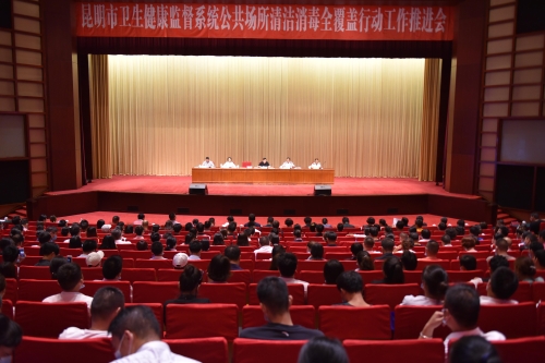 为认真落实市委市政府关于推进爱国卫生专项行动决策部署,扎实推进昆明市公共场所清洁消毒全覆盖行动,不断提高公共场所卫生质量,切实维护人民群众健康权益,打造卫生安全、公众放心的公共场所,严防传染性疾病在公共场所传播,昆明市卫生健康监督系统于2020年8月28日召开了公共场所清洁消毒全覆盖行动工作推进会。全市各区县卫健局分管领导、各区县卫生健康监督机构主要领导及相关科室人员、400家公共场所经营单位共计400余人参加了此次会议。