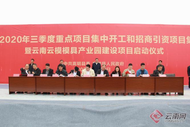 云南网讯(记者 赵黎浩 通讯员 顾燕波 苏应娜 李光选)近日,昆明市嵩明县2020年三季度招商引资项目集中签约暨重点项目集中开工仪式在云南云模科技有限公司模具产业园项目建设现场举行。