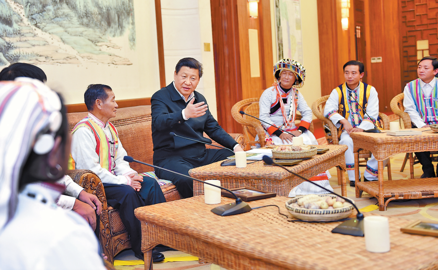 2015年1月20日,习近平总书记在昆明亲切会见怒江傈僳族自治州贡山独龙族怒族自治县干部群众代表。新华社记者 张铎 摄