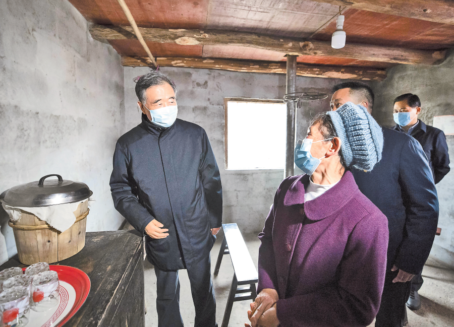 2020年4月24日,中共中央政治局常委、全国政协主席汪洋在云南昭通市镇雄县场坝镇摩多村委会老包脚村民小组的一户贫困户家中了解脱贫情况。新华社记者 王晔 摄
