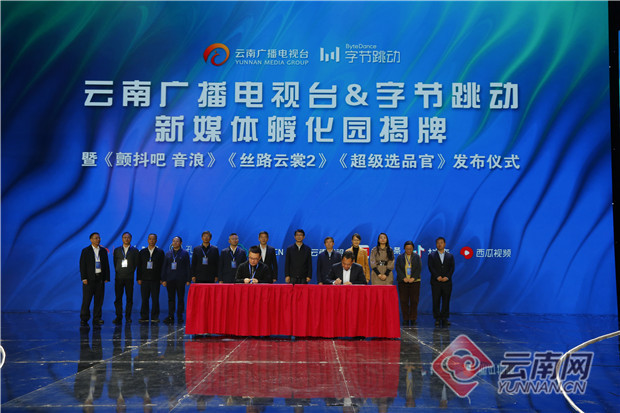 云南网讯(记者 张成)10月29日上午,“云南广播电视台&北京字节跳动公司新媒体孵化园”揭牌暨《颤抖吧 音浪》《丝路云裳2》《超级选品官》发布仪式在云南广播电视台1号演播厅举行。