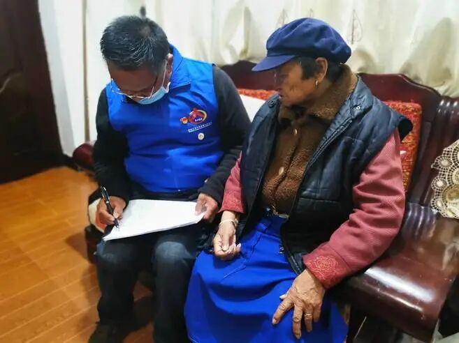 普查摸底途中,和礼群敲响一间又一间的房门,重复着相同的流程:询问、登记、扫码、核对……他不厌其烦地引导被普查人完成各个环节,如果碰到老人,他更是一百分地耐心询问指导,工作到忘情时,和礼群甚至还蹲在地上完成填报登记,一蹲就是好几分钟……