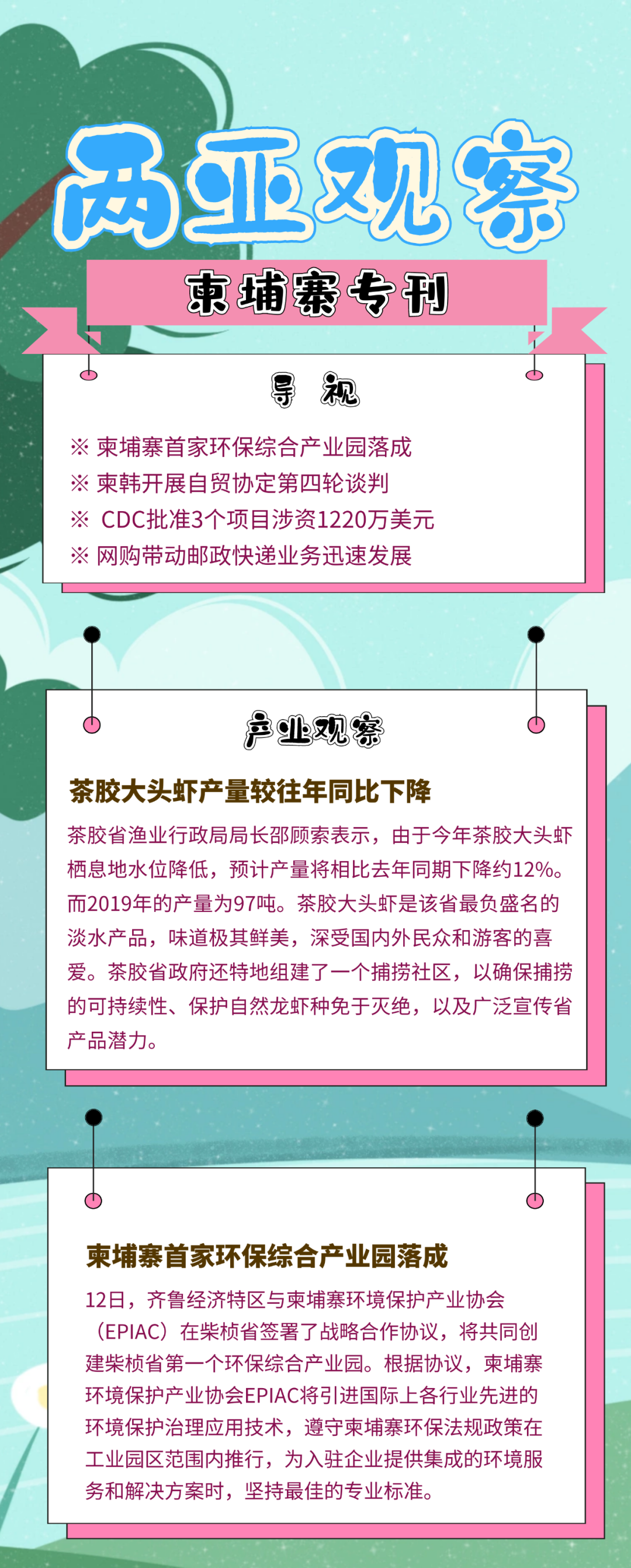 两亚观察丨柬埔寨首家环保综合产业园落成;柬埔寨前三季出口额达132亿美元 同比增长19%