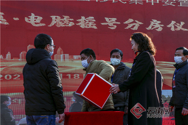 1月18日上午,巧家县金塘镇希望学校洒满冬日暖阳,在公证人员和参建各方的共同见证下,摇号操作员按下了电脑随机分房系统的操作键,大屏幕暂停的瞬间,白鹤滩水电站巧家库区金塘镇迁建集镇1437套安置房的第一批新主人名单正式产生,这也标志着白鹤滩移民工程巧家库区的分房及搬迁工作正式拉开序幕。