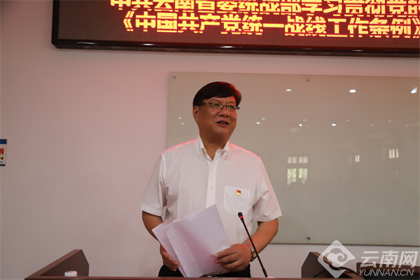 省委统战部二级巡视员吴昀三作开班动员讲话,他对本期研修班顺利开班表示祝贺,对厦门大学的精心安排表示感谢。他表示,2021年云南省委统战部把深入学习贯彻党的十九届五中全会精神和《条例》作为教育培训的首要政治任务,着力在促进学习教育“深化”上下功夫,在推动学习成果“转化”上求突破,在形成学习培训“常态化”上出实招,不断增强统战干部的政治判断力、政治领悟力、政治执行力。他希望,要始终保持学习提升的紧迫感,以“攻城不怕坚、攻书莫畏难”的毅力加强理论修养;要攥紧知行合一的金钥匙,紧密结合工作实际和个人思考推动学习收获转化运用;要严格遵守干部教育培训管理规定,展现新时代云南统一战线干部良好形象。