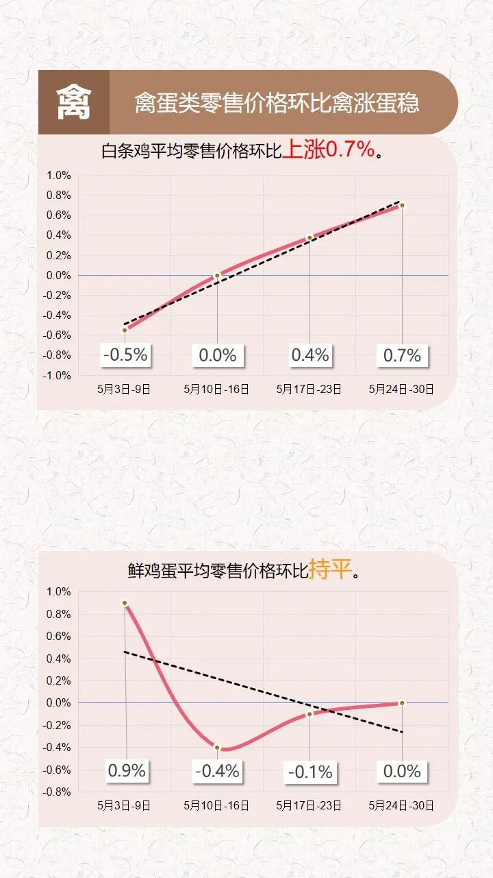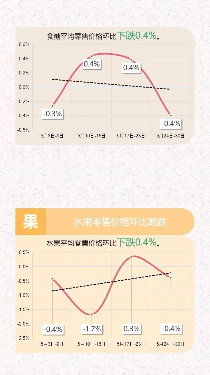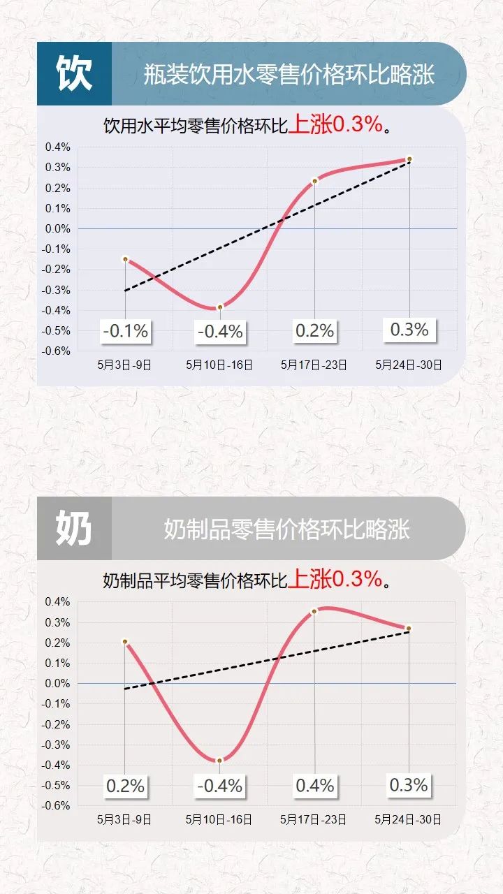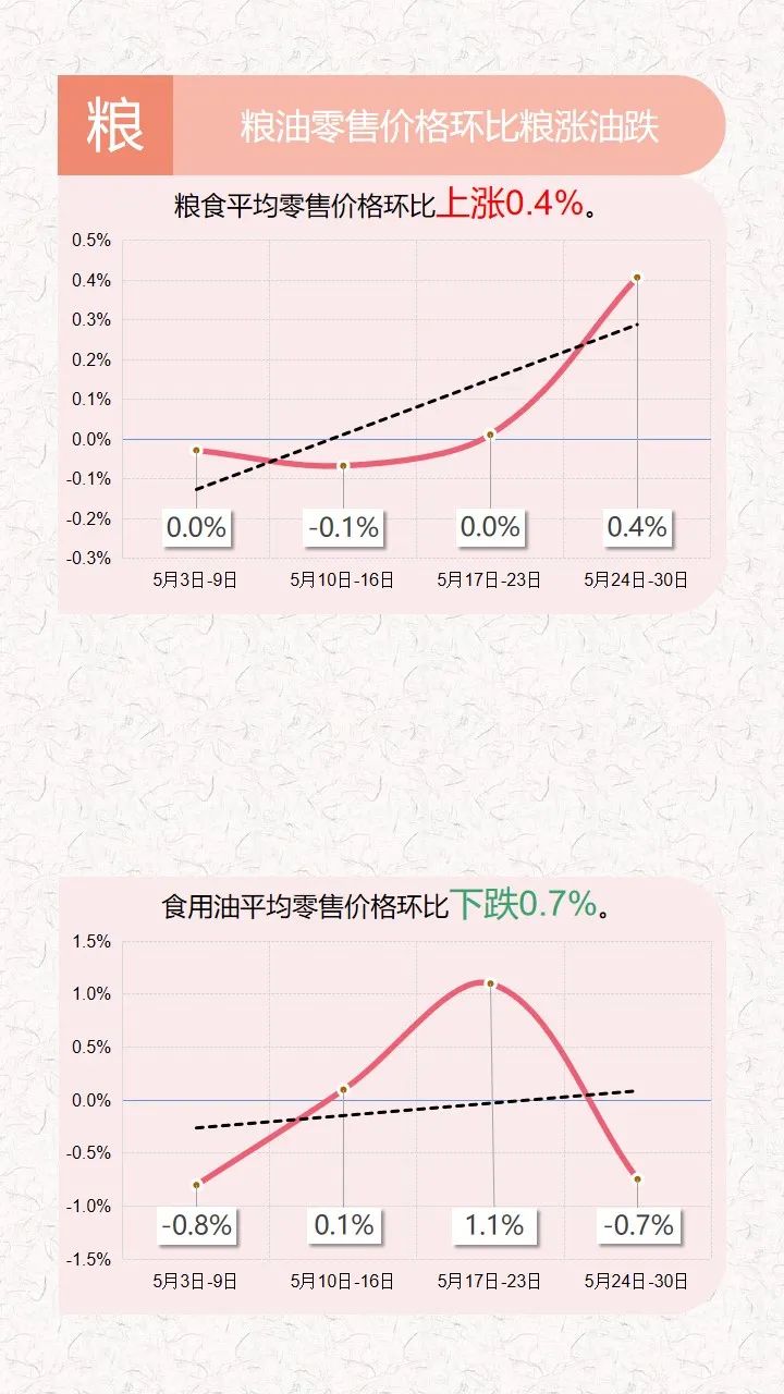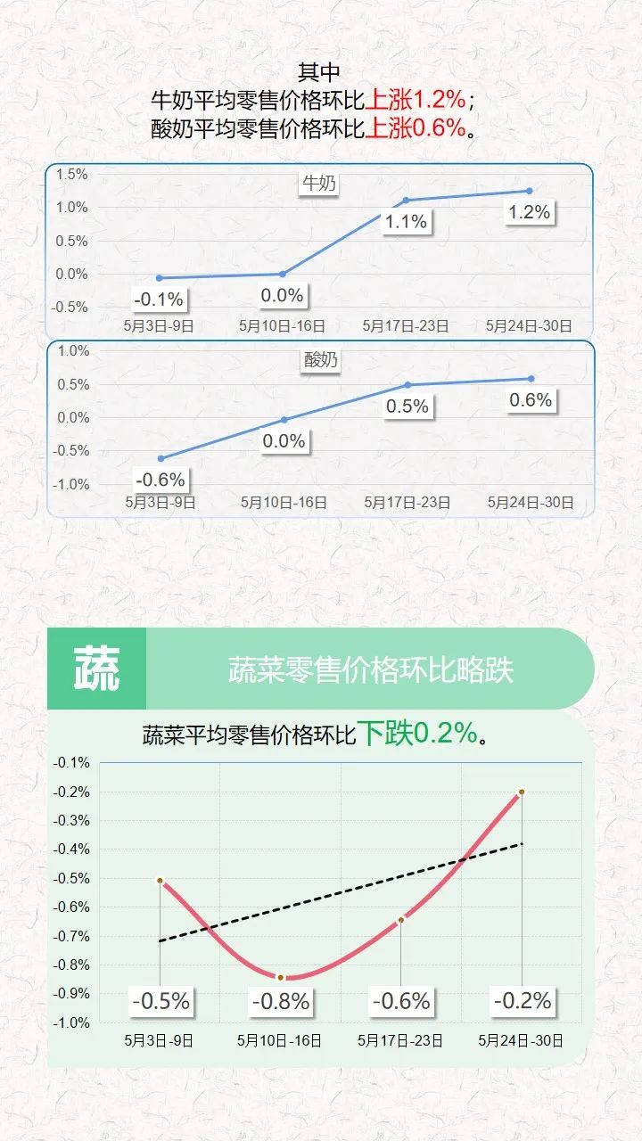 2021年5月24日-30日云南省生活必需品零售价格环比5涨1平6跌