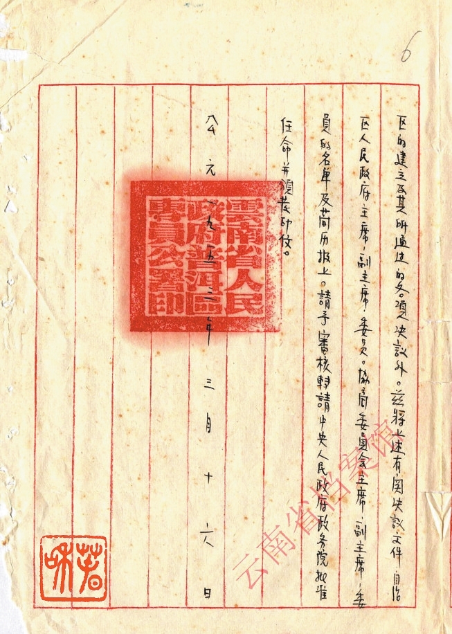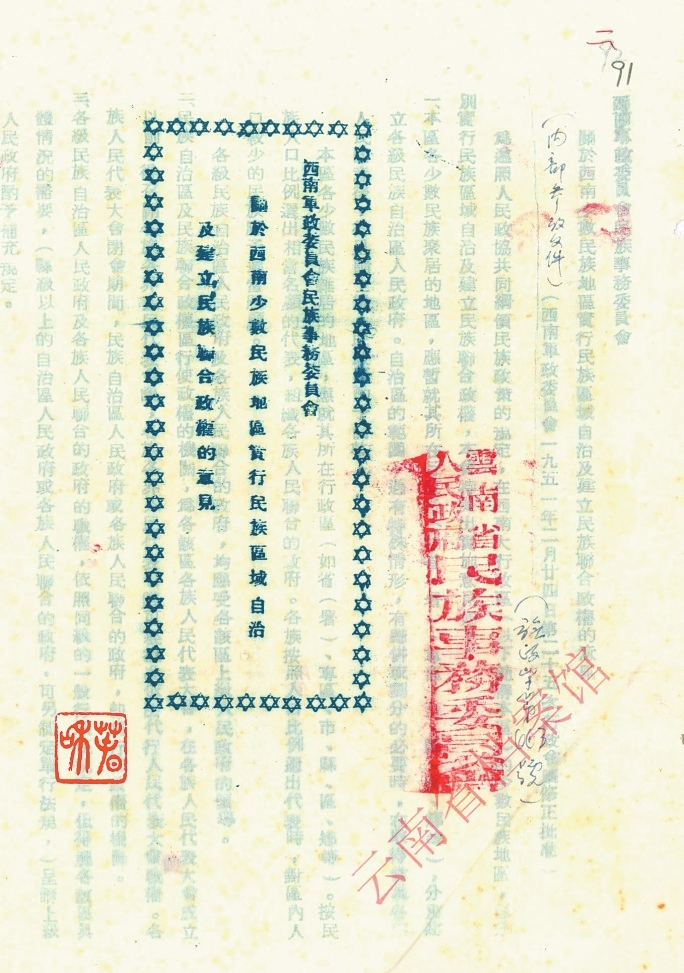 1951年1月1日,云南省人民政府民族事务委员会转发西南军政委员会民族事务委员会《关于西南少数民族地区实行民族区域自治及建立民族联合政权的意见》
