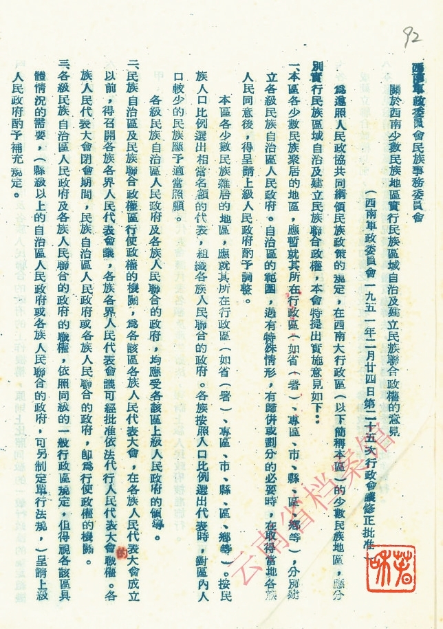 西南军政委员会民族事务委员会《关于西南少数民族地区实行民族区域自治及建立民族联合政权的意见》节选