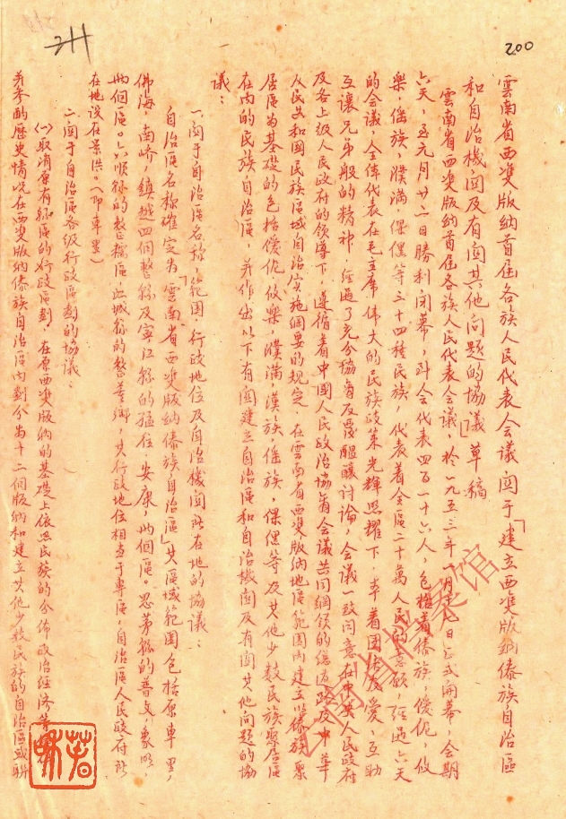 1953年1月,云南省西双版纳首届各族人民代表会议关于《建立西双版纳傣族自治区和自治机关及有关其他问题的协议》(节选)