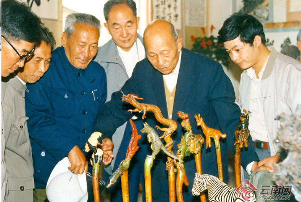 省黄埔军校同学会名誉会长朱家璧(右二)参加“纪念黄埔军校建校66周年诗画展”。云南省委统战部 供图