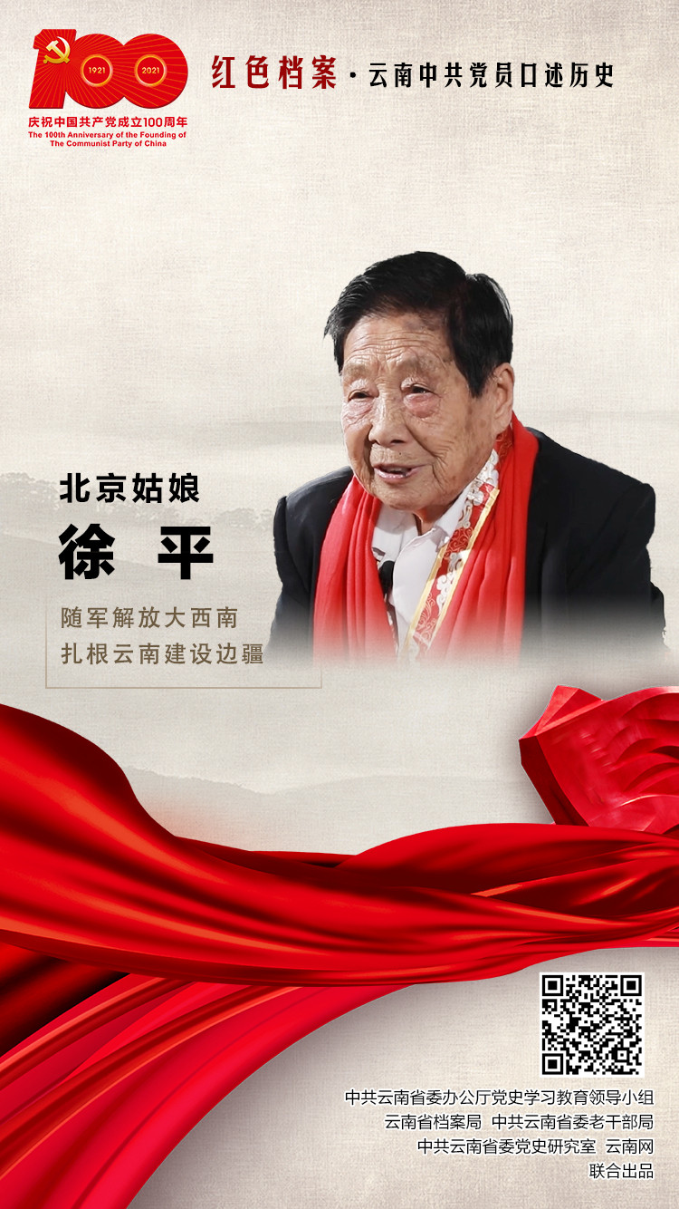 参军之后,徐平跟随部队开始了解放大西南的征程。1950年初,她随军来到大理,从此扎根云南,参加了从农村到城镇的一系列民主改革运动,历任凤仪县宣传部部长、大理政府第二招待所所长等职务,为云南的发展与建设贡献了力量。