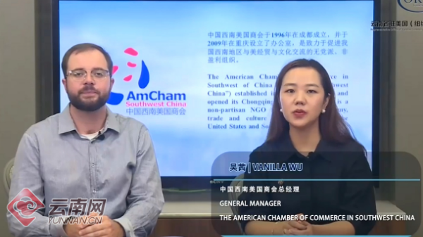 随后,中国西南美国商会总经理吴茜向北美的企业投资人介绍了云南的基本情况和投资环境。她说,云南依托全省主要铁路、公路货运枢纽及重点口岸,已建成全方位、立体化、高水平的开放平台矩阵。省会昆明市是亚洲五小时航空圈的中心枢纽,对全球53个国家和地区入境人员实行144小时过境免签。