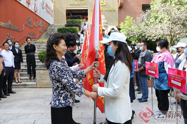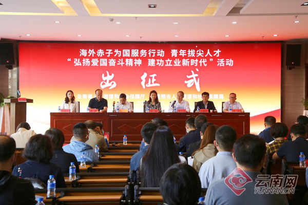 省人才办、省财政厅、昆明市人力资源和社会保障局、中国(云南)自贸区昆明片区(昆明经开区)及省人力资源和社会保障厅人才工作领导小组部分成员单位相关负责人出席了出征仪式,并为各服务团授旗。