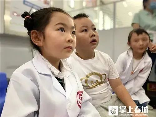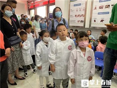 医务人员为到场的小朋友穿上定制的“白大褂”,“小小牙医”们用自己刚学到的牙科知识为爸爸妈妈检查。