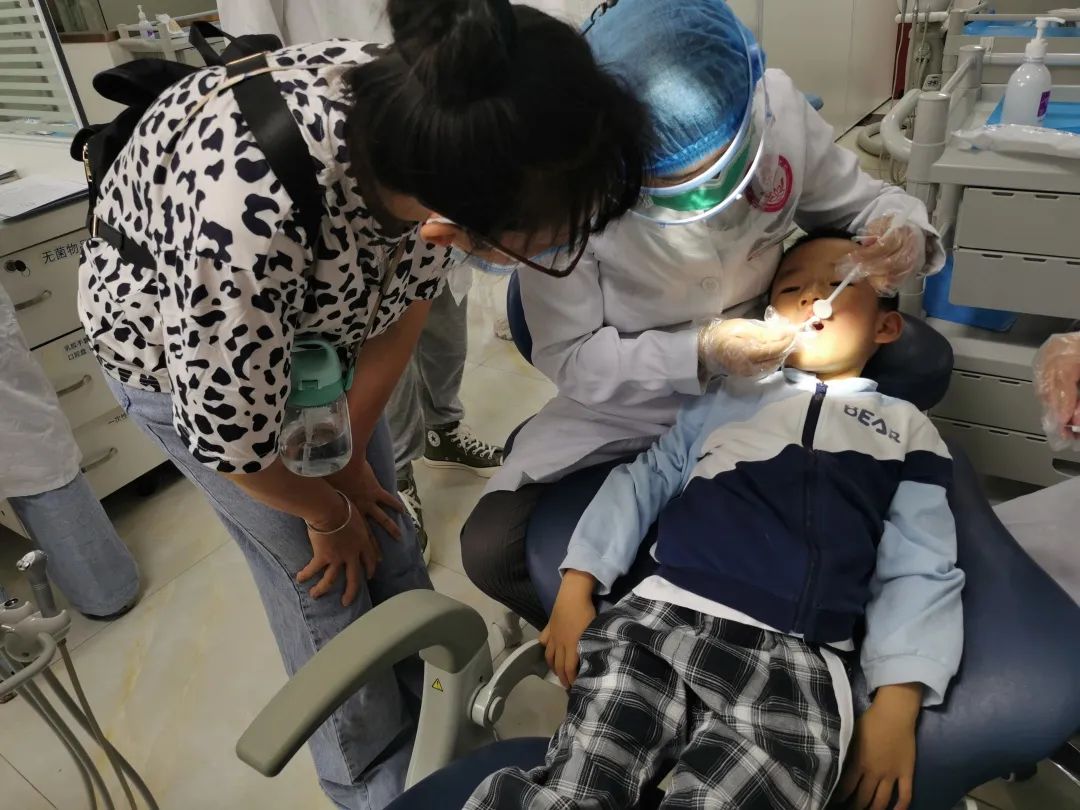 互动现场,小朋友们做完口腔检查、牙齿涂氟后,医生们也向家长反馈了孩子存在口腔问题。